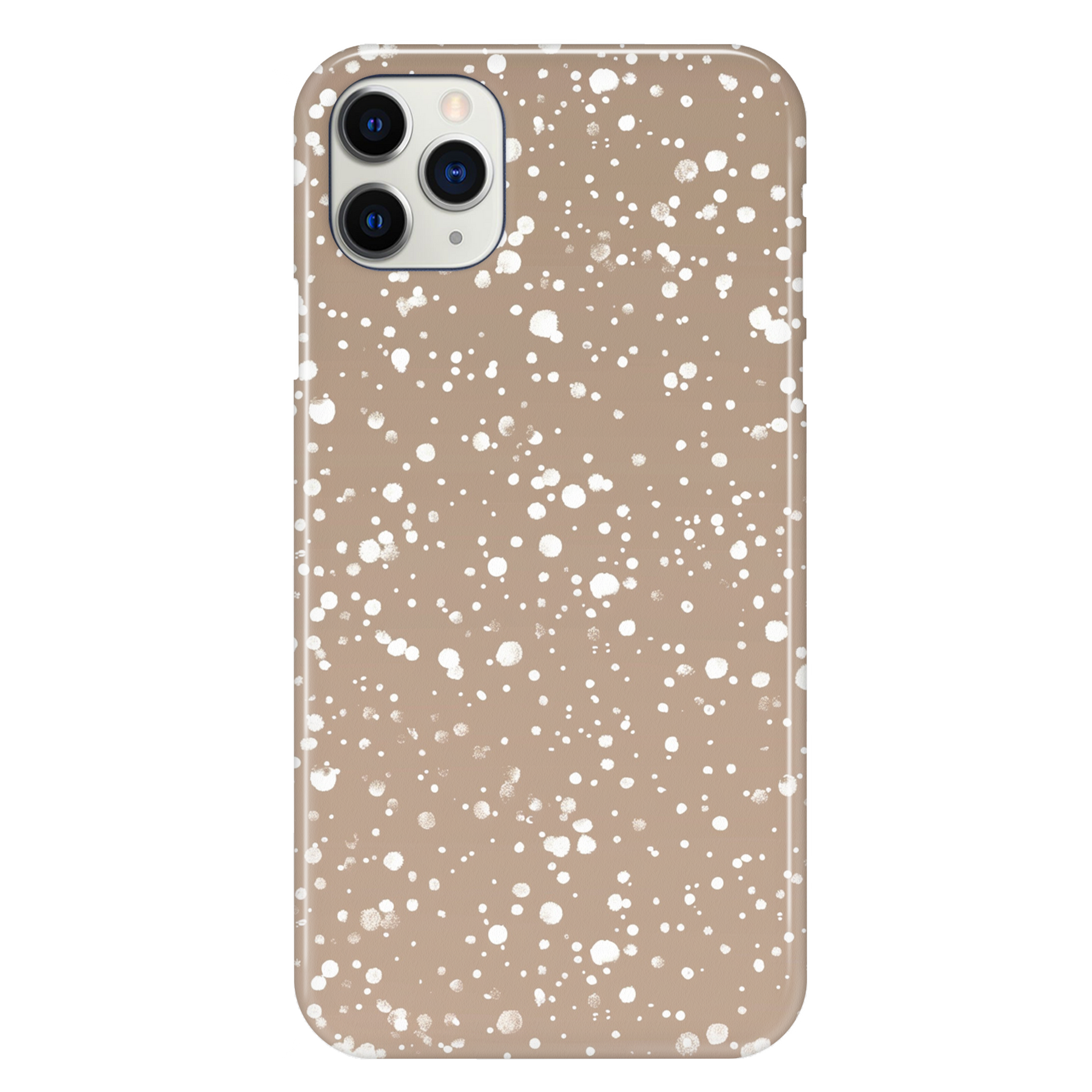 This elegant snow-speckled phone case cover features a warm beige background scattered with soft white snowfall, creating a calm and understated winter design. The subtle pattern adds seasonal charm while remaining refined enough for everyday wear.